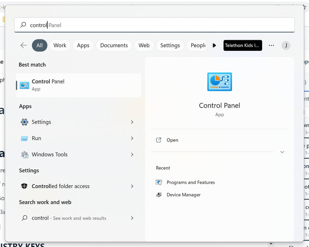 - In the Windows taskbar search box, type Control Panel and double-click the result.