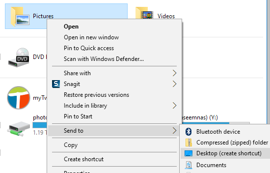 Since there really isn’t any official way to do this, we have to kind of hack Windows to get it to do what we want. I’ve tested it out and the process seems to work just fine. To get started, find your folder and create a shortcut to the folder on your desktop.
