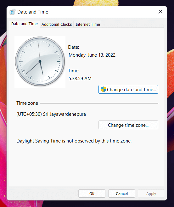 Manually Change Time and Date in Windows