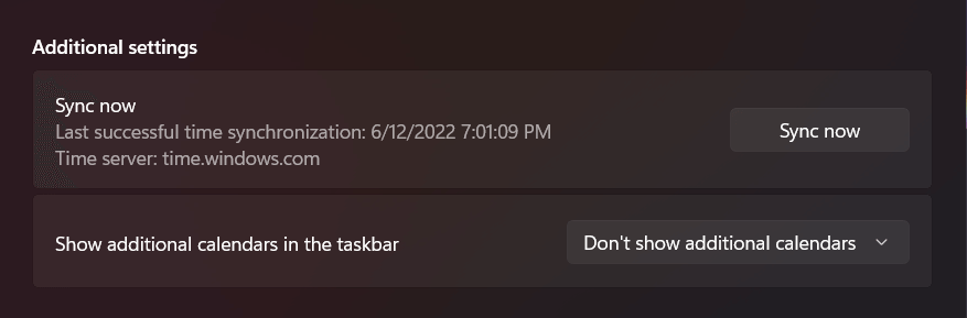- If the issue persists, scroll down to Additional settings (Windows 11) or Synchronize your clock (Windows 10) and select the Sync now button That will forcibly sync the time and date with Microsoft’s time server.