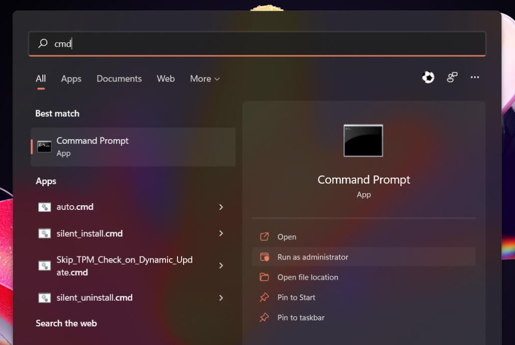 - Open the Start menu, type cmd, and select Run as administrator.