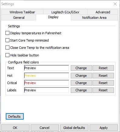 If you click on Options and then Settings, you can also make changes to how Core Temp monitors and displays CPU temperatures.