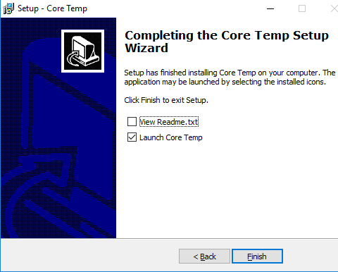 The easiest way to check your CPU temperature is to download Core Temp from alcpu.com. Once you’ve downloaded the software, run the installer and then click the **Launch Core Temp **box. Finally, click Finish.