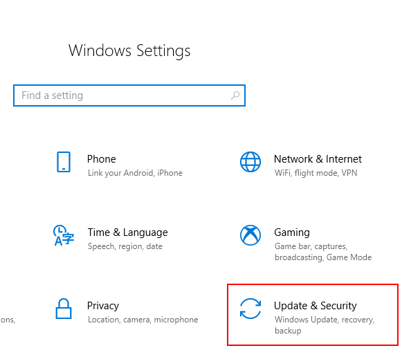 - In the Windows Settings menu, click Update & Security.