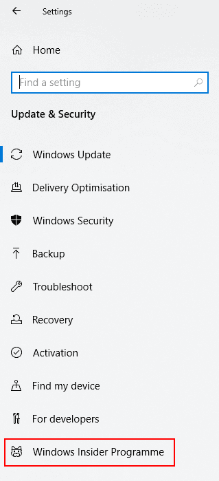 - In the Update & Security menu, click **Windows Insider Program **in the left-hand menu (or Windows Insider Programme if your language is set to UK English).