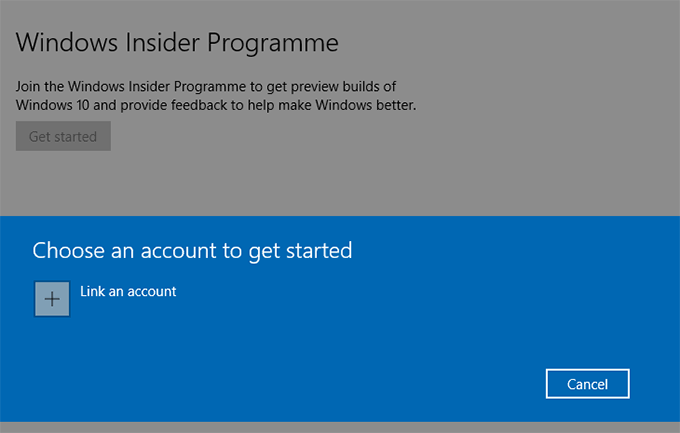 - You’ll be asked to link your Windows Insider account. Click the Link an account button and sign in with your Microsoft account in the Microsoft sign-in window that appears.