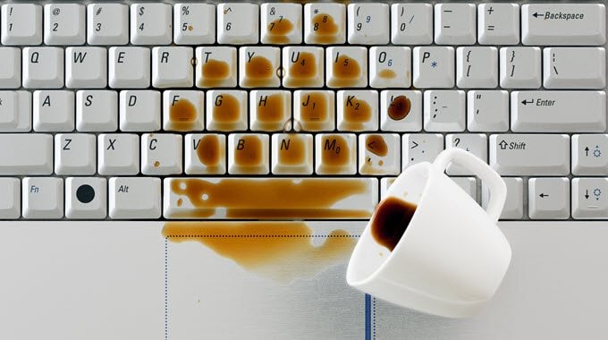 That can cause a short circuit in your computer or make an electrical connection between you and the computer causing you pain and possibly severe injury. In the extreme case, it can even result in death.