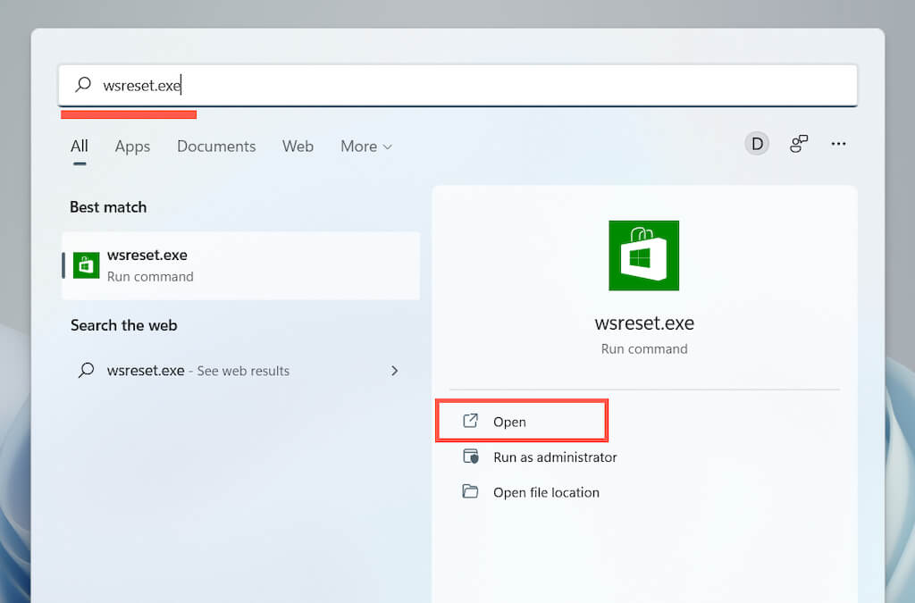 The quickest way to invoke the WSReset.exe tool is to run it via the Start menu or Windows Search.