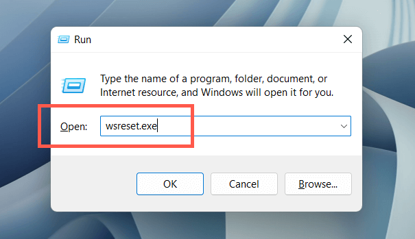 Another quick way to get to WSReset.exe is to launch it as a Run command.