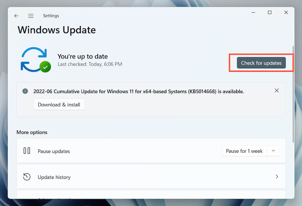 Open the **Settings **app, select Windows Update, and select Check for Update. If you see any pending updates, select Download & Install.