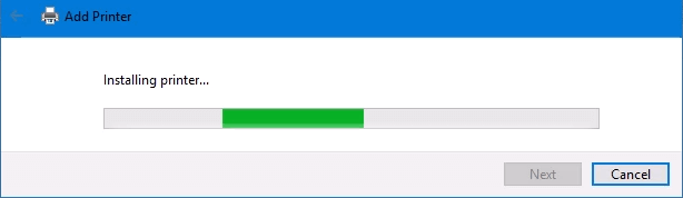 The printer will start installing. It may take a few seconds or minutes.