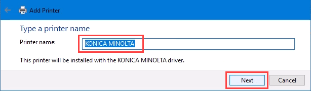 - It will auto-select a name for the printer. That can change as needed. Select **Next**.