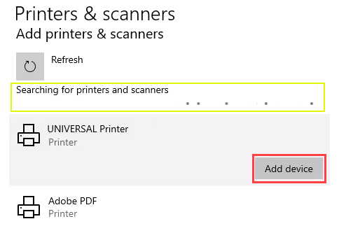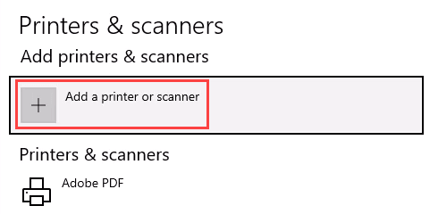 - When the **Printers & scanners **window opens, select **Add a printer or scanner**. It will start searching for available printers.