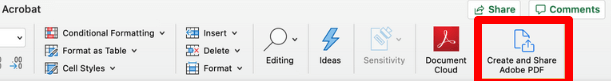 - If you’re using a Mac, click **Create and Share Adobe PDF** and select a folder for the exported file. Alternatively, you can click **Choose a Different Folder**, go to the folder you want to save the file into, give it a name, and click **Save**.