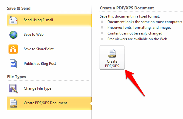 - Click **Create PDF/XPS Document**.