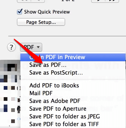 - In the next menu, click **Save as PDF** from the dropdown menu in the bottom left corner.