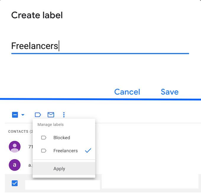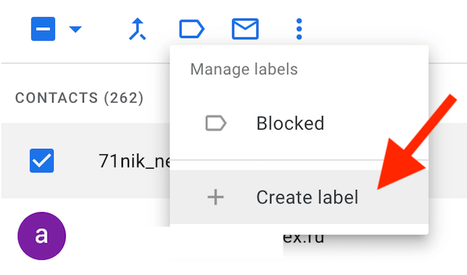 * Once you’ve selected the contacts, find the **Manage labels** icon on top of the screen and click on it.