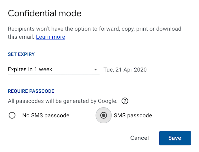You can even set up extra security and require the recipient to enter an SMS code that will be sent to their phone before they can open your email.