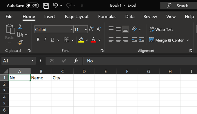 - Start entering data for your mail merge recipients. Make sure to use the first row for the headers of your data. If you’re going to enter someone’s name, use **Name** as the header in the first row, and so on.