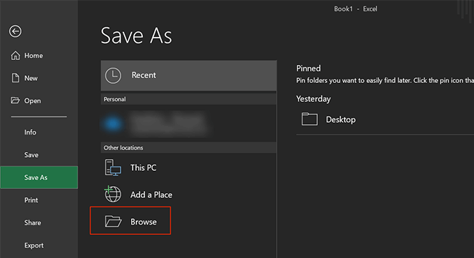 - Click the **File** menu at the top, choose **Save** from the left sidebar, and click the **Browse** button.