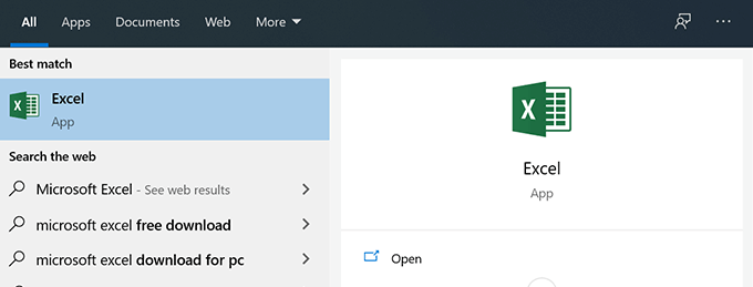 - * Use the Start Menu search to search for and open Microsoft Excel.