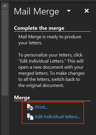 - You can now click **Print** to print these personalized letters or select **Edit individual letters** to edit these letters.