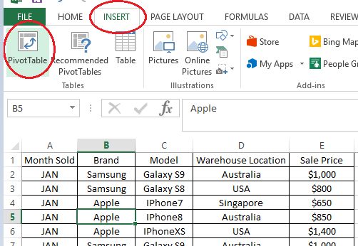 STEP 5 – To know whether more Apple or Samsung products were sold in your store, you can reuse the same pivot table without needing to create a new one.