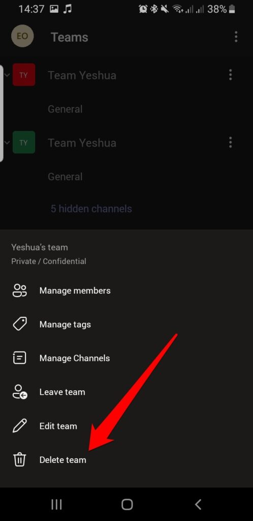 - Tap **Delete team**.