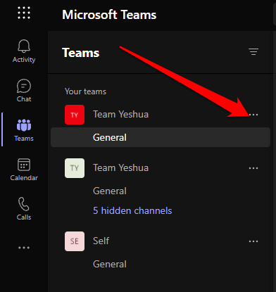 - Select **Options **(three dots) next to the team name.