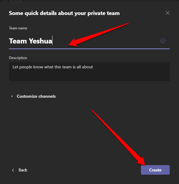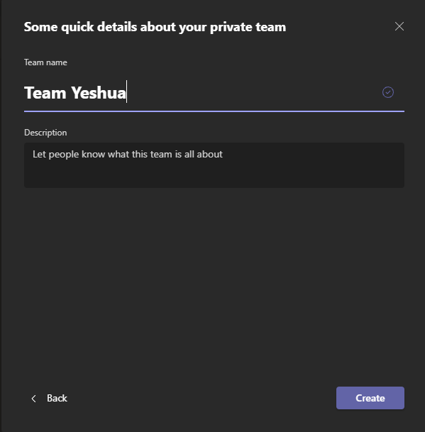 - Give the team a **name** and then add a **description** if you want.