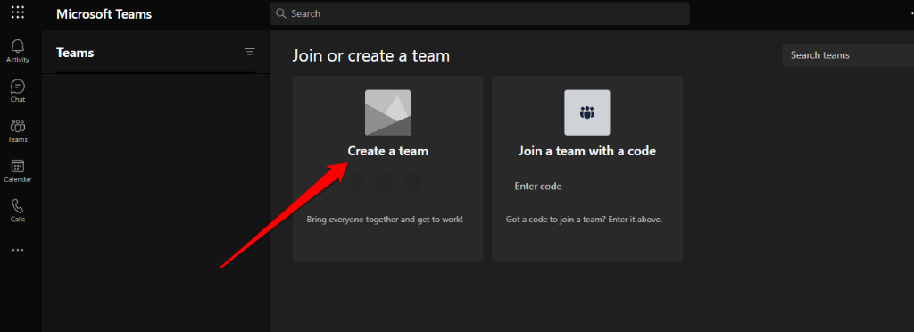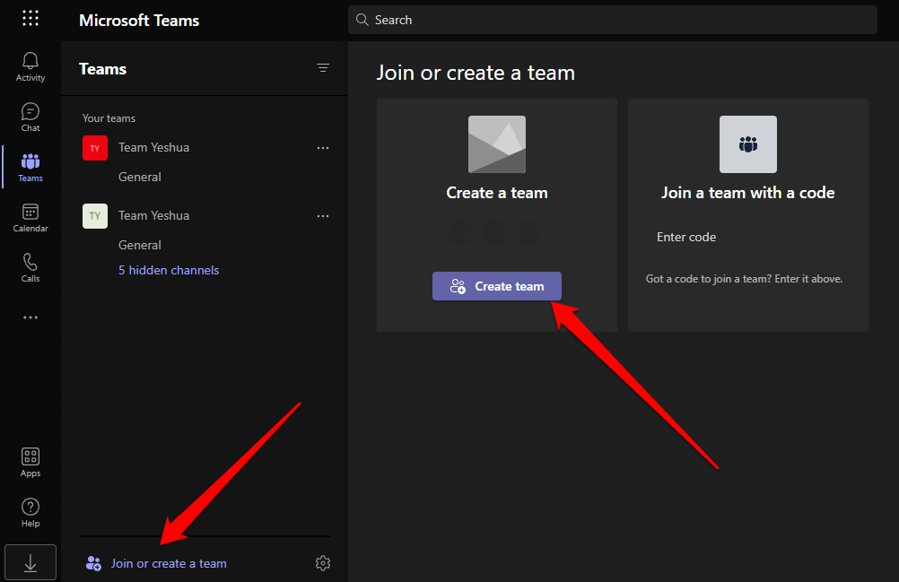 - Select Join or Create a team > Create a Team.