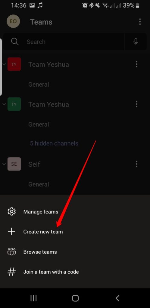 - Next, tap **Create new team**.