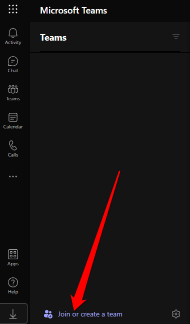 - To start a new team, select** Join or Create a Team** link in the bottom-left corner.