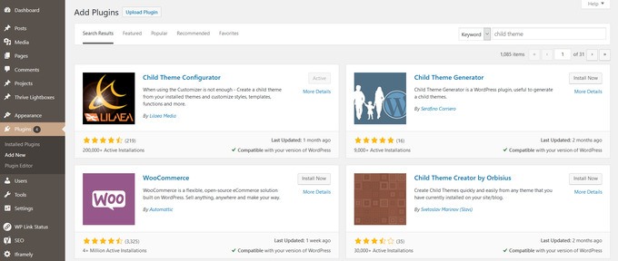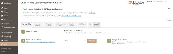 The first plugin you will see is the Child Theme Configurator. This is a good choice, as seen in the screenshot above, because it: