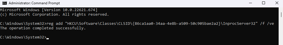 To enable the old menu again, you can copy-paste the appropriate command into an elevated Command Prompt and let it do its magic. That way, there’s no risk of messing up the wrong registry key and bricking your computer.