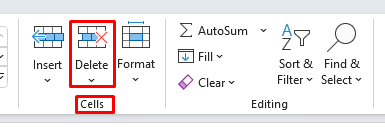 - Find the Cells section and click Delete.