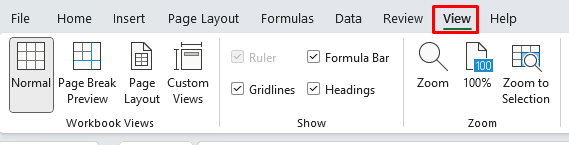 - Go to the View tab.