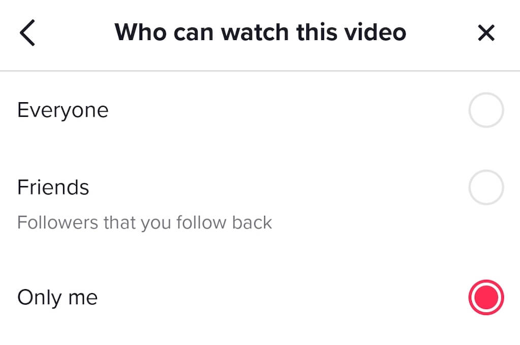 - Under Who can watch this video, you’ll see three options: Everyone, Friends (followers you follow back), and Only me.