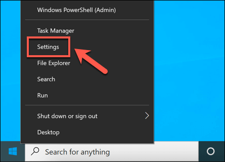 - To start, right-click the Start menu and select the Settings option.