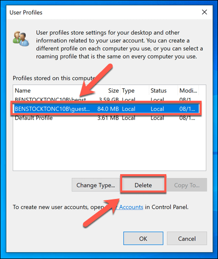If you decide to delete a user account, Windows should remove the user profile with it. Occasionally, however, Windows will leave the files and settings on your PC, which can take up additional disk space. You’ll need to remove your user profile manually if this is the case.