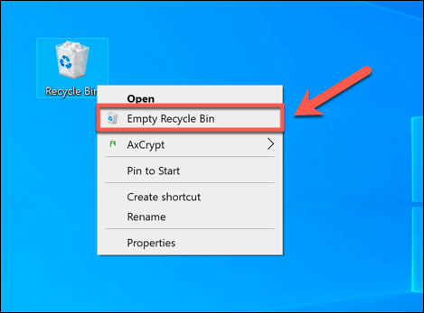 - Windows will place the user profile folder in the Recycle Bin. If the folder is too full for Windows to place in the Recycle Bin, follow the additional on-screen instructions to confirm the deletion. If Windows places the folder in the Recycle Bin, however, right-click the Recycle Bin icon on the desktop, then select the **Empty Recycle Bin **option.