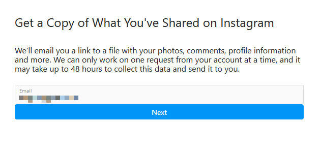 Note: If you don’t see the email with the link to your data, check again later as it may take up to 48 hours to appear in your inbox. Instagram also stores some data temporarily for security and safety reasons, but you won’t see this data when you view or download it.
