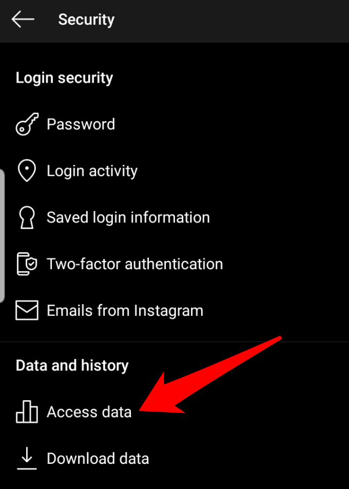 - Next, tap **Security > Access Data**.