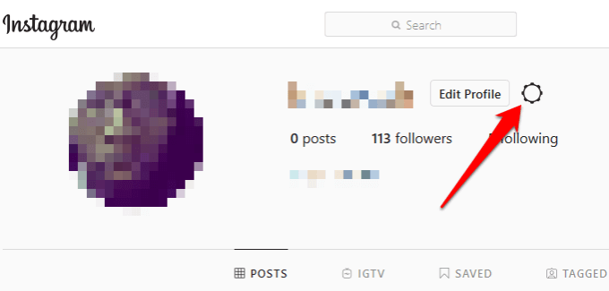 - Open Instagram on your web browser, go to your profile and click the gear icon to open Settings.
