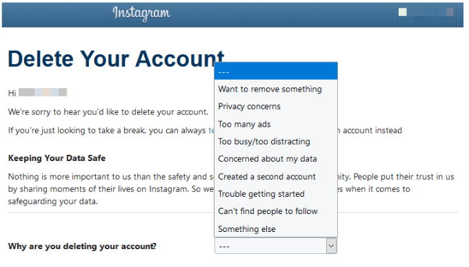 Like Facebook, Instagram also gives you the option to disable or delete your account.