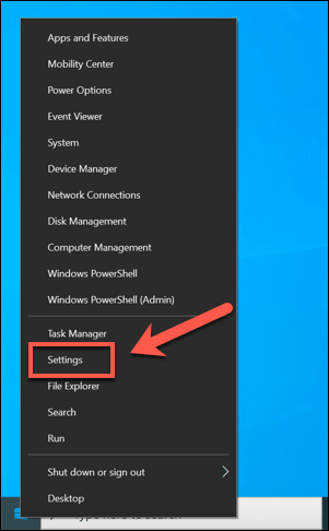 As we’ve mentioned, Microsoft has prevented Windows 10 Home users from being able to completely disable telemetry data. If you want to limit your telemetry data sharing, you can do so from the Windows Settings menu. * To access this menu, right-click the Start menu and click Settings. This will load the Windows 10 Settings menu in a new window.