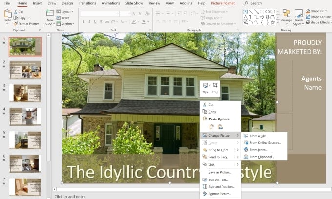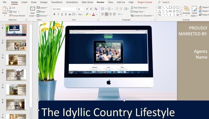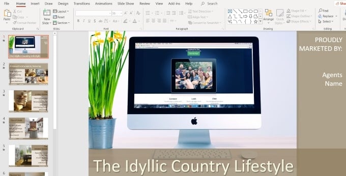 There are many ways to edit a Powerpoint presentation. For the purposes of this tutorial, we are going to outline the steps to turn a real estate template into one for a website design company.