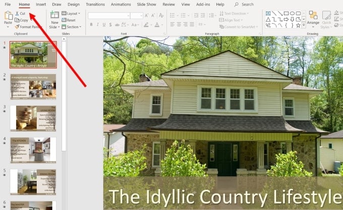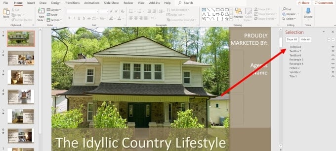 The image below shows the cover slide with a website image that replaced the picture of the home.