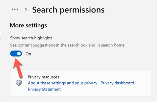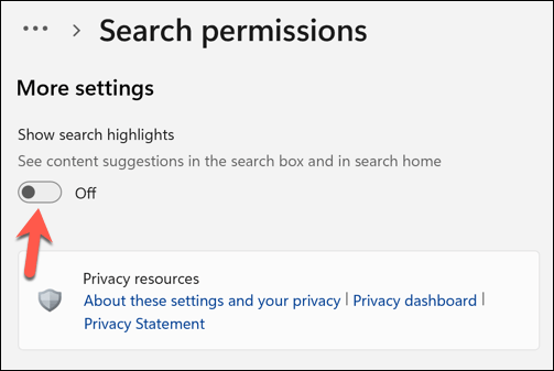 - To disable search highlights, make sure to click the Show search highlights switch to disable the feature, placing it in the Offposition.