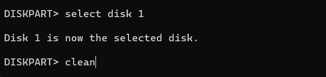 - Run the clean command to erase all data on the drive.